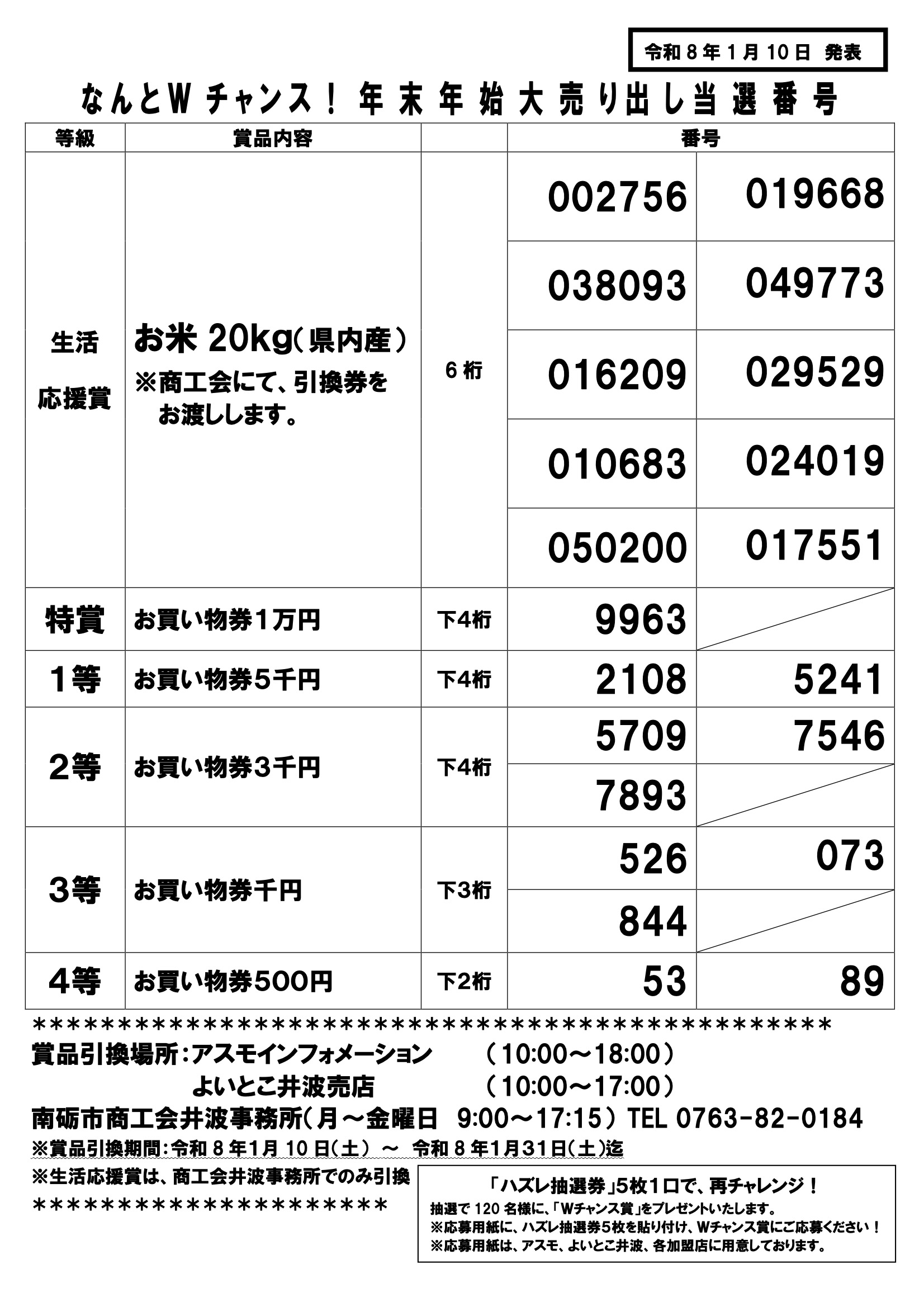 井波商店街・アスモ 共同企画 「なんとWチャンス!年末年始大売り出し」のお知らせ